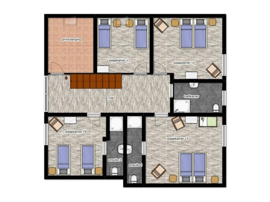 The house is modern, comfortable and brightly decorated. With plenty of space for everyone. For outdoor activities material, there is a storage room. For entertainment a game room is available on the lower floor, with pool billiards, darts, table tennis, table football, board games, library (for all ages), toys, TV and gameconsole.